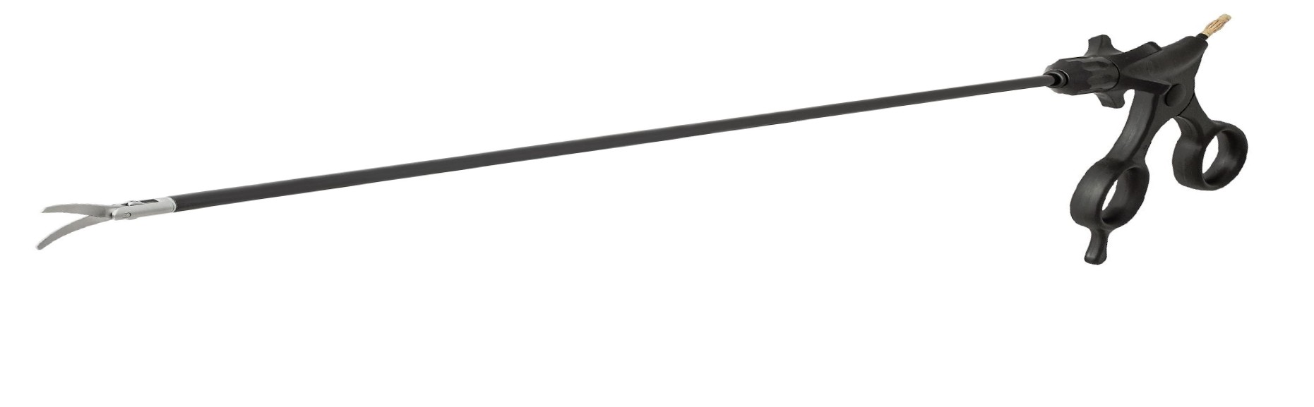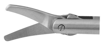 ‧Metzenbaum-Scissors, curved,serrated, double action, blade 11 mm, Ø 5mm, length 33 cm.